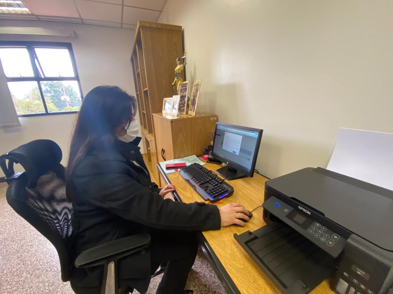 En la gráfica se observa a la jueza de Ejecución, Abg. Dalmi Gómez verificando este innovador mecanismo, realizando la primera firma digital.