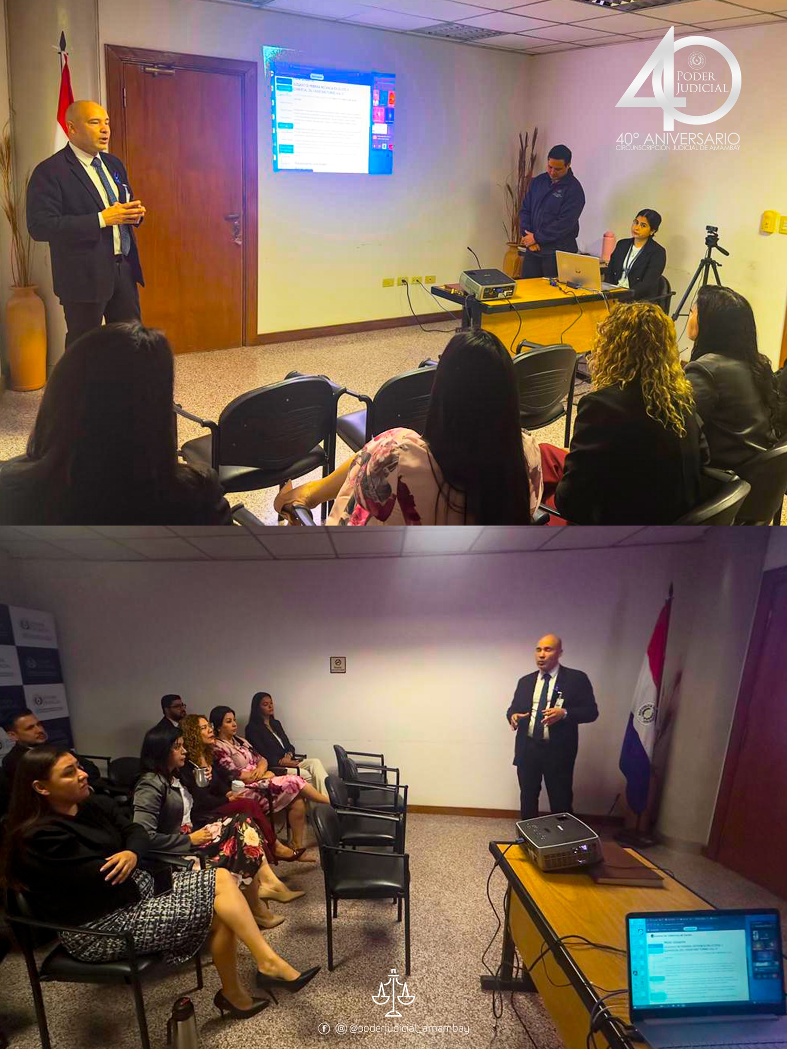 Se llevaron a cabo las jornadas de capacitación sobre el Sistema de Cobertura de Gastos, establecido por la Acordada N.º 1.718/2023, desarrolladas del 11 al 14 de noviembre, con el propósito de fortalecer la gestión administrativa y optimizar el nuevo proceso de acreditación electrónica de gastos y estuvo dirigida a Magistrados, Actuarios y Ujieres, en modalidad presencial como virtual, abarcando las ciudades de Capitán Bado, Bella Vista Norte, Zanja Pytá, Karapaí y Cerro Corá. Asimismo, se realizó la verificación in situ en cada juzgado y despacho, garantizando la correcta implementación del sistema. Las jornadas estuvieron a cargo del Lic. Miguel Abente, del Departamento de Ingresos Judiciales; la Lic. Fátima Díaz; y la Abg. Sara Alcaraz, de la Dirección General de Tecnología y las Comunicaciones.