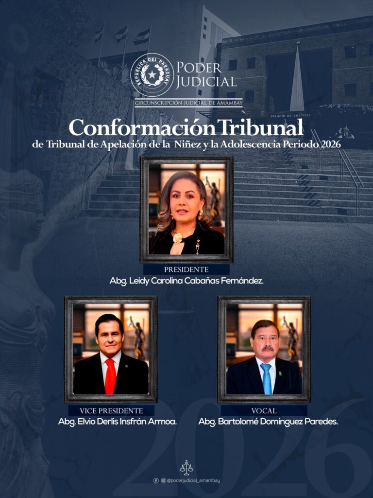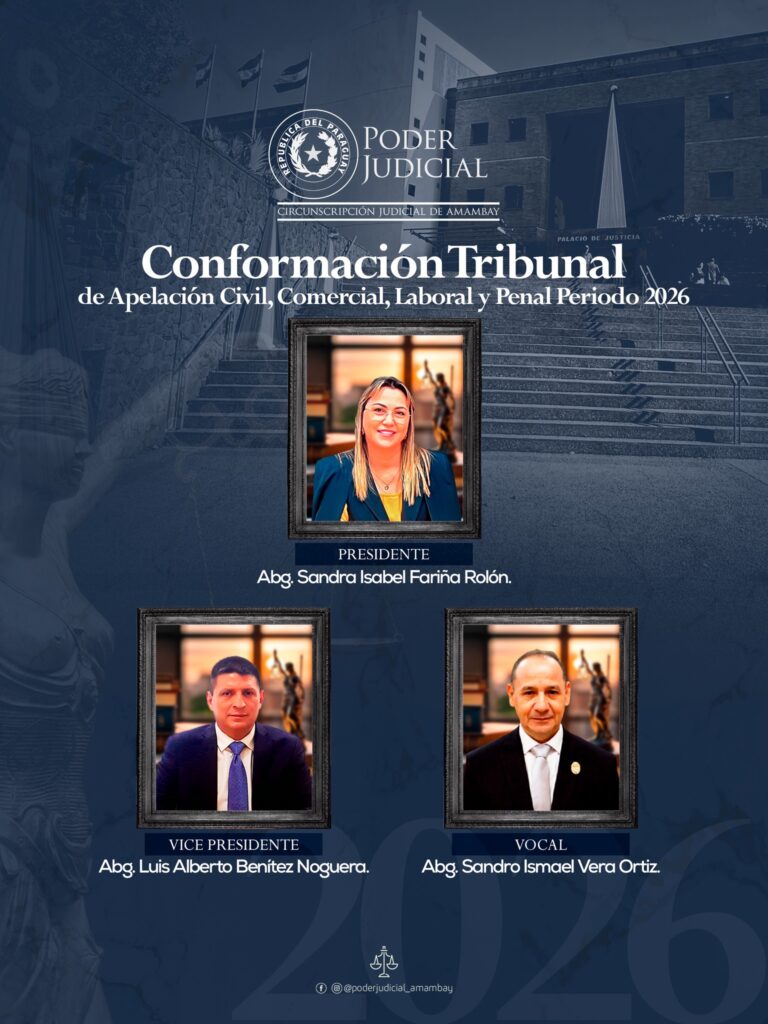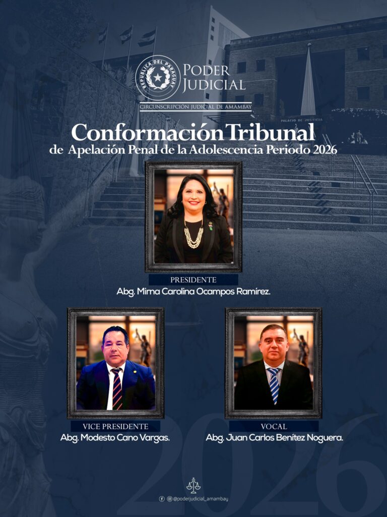 La conformación de los Tribunales de Apelación para el periodo 2026 de la Circunscripción Judicial de Amambay, estará presidido por Magistradas de reconocida trayectoria, sólida formación jurídica y amplia experiencia en la administración de justicia, que reviste especial relevancia institucional, destacando el liderazgo de mujeres magistradas, reafirmando el compromiso con la equidad, la profesionalización y el fortalecimiento del rol de la mujer dentro del sistema judicial.