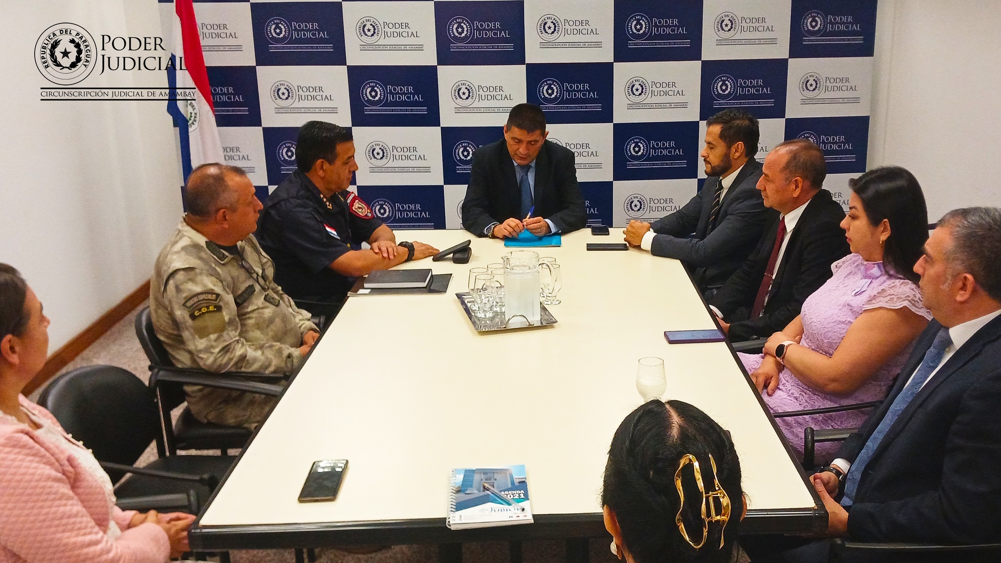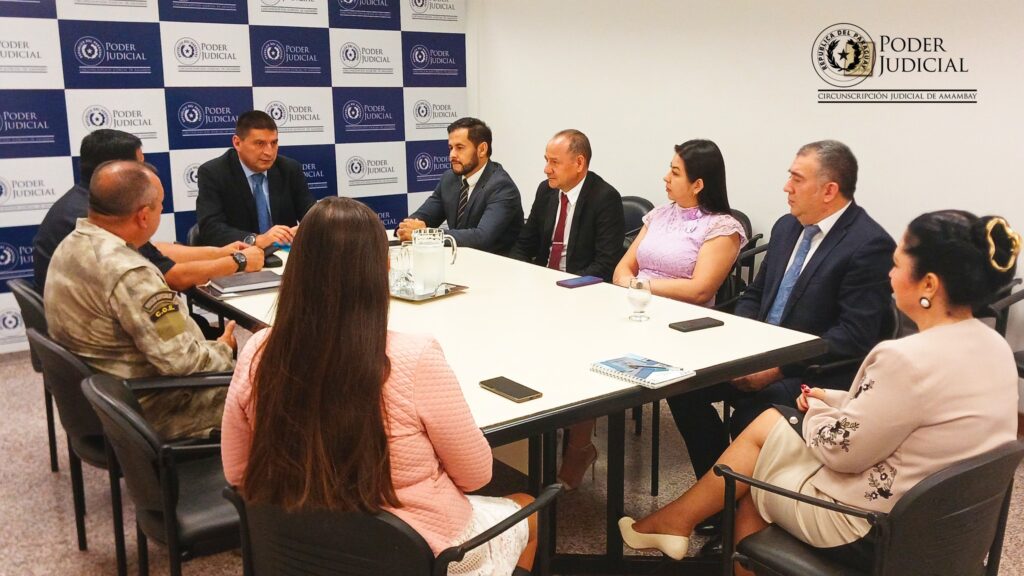 En la fecha se llevó a cabo una reunión interinstitucional con representantes de la Policía Nacional del Paraguay del Departamento de Amambay, con el objetivo de fortalecer la cooperación y coordinación entre las instituciones en beneficio de la ciudadanía y contó con la presencia del Presidente de la Circunscripción Judicial de Amambay, Abg. Luis Benítez Noguera, así como de los Miembros del Consejo de Administración, Abg. Sandro Ismael Vera y Abg. Elvio Derlis Insfrán, además de Magistrados de la circunscripción.
